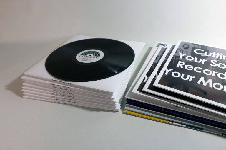 入稿されたオーディオファイルは、エンジニアによるレコードへの最適化作業を経て、音溝がカッティングされます。塩化ビニール製のレコード盤は、市販のレコードと同等の品質を誇り、DJプレイはもちろんスクラッチプレイへの耐久性にも優れています。